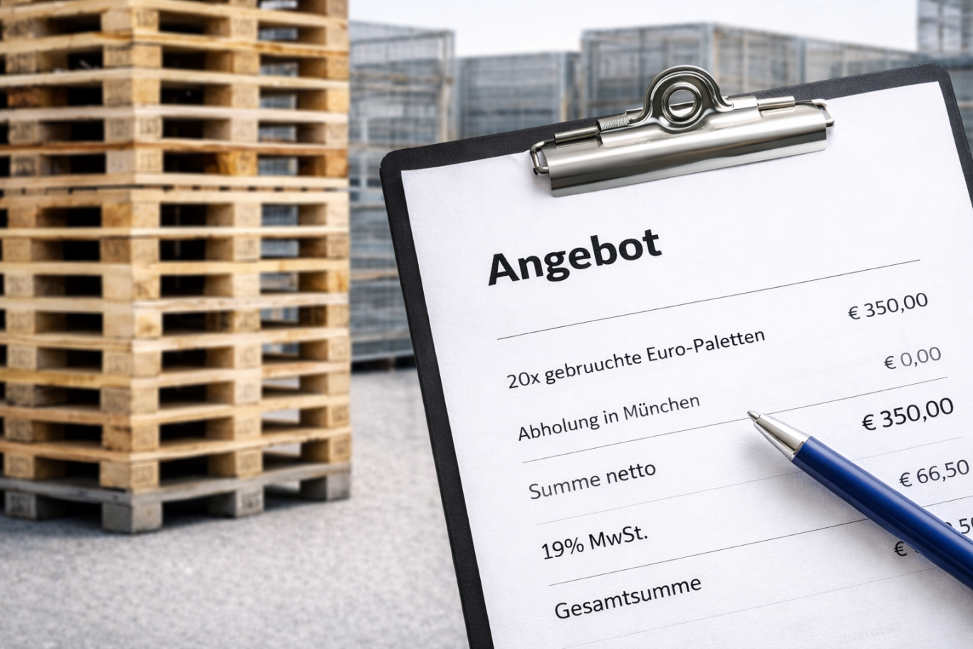Wir bewerten Ihre Europaletten, Gitterboxen oder Einwegpaletten fair nach Zustand, Menge und aktueller Marktlage im Raum München.
